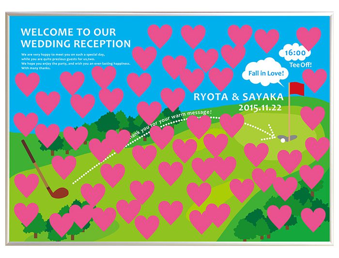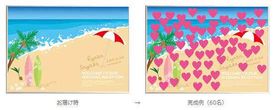 こちらもおふたりのお名前と挙式日、時間がプリントされたオリジナルデザイン。ハートがいっぱいになっていくととってもキュート♡インテリアとしてもぴったりです。
