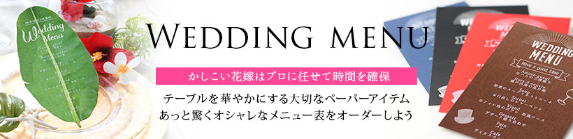ゲストみんなが必ずチェックすると言っても過言ではないメニュー表。ぜひ用紙にこだわっておしゃれな1枚を作ってみてはいかがでしょうか。