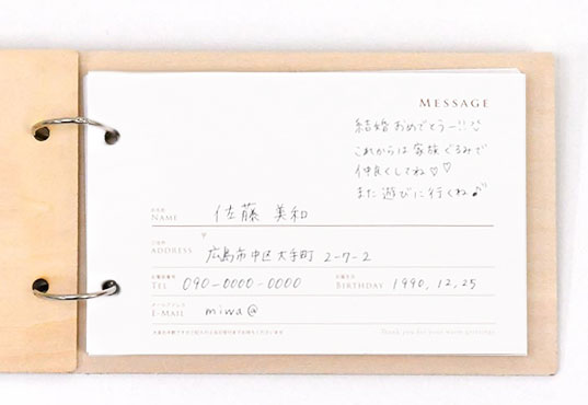 リング式になっているのでカードをささっと入れ換えできて結婚式のあとも便利。住所録みたいに使えて管理がしやすそうです。しかもご本人直筆の住所録なんてステキな宝物になりますよね♡