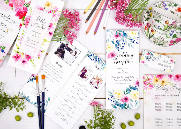 まずは、ペーパーアイテムの中でも当日マストな席次表をピックアップしました。こちら、まずデザインがおしゃれ!くだけすぎない上品ナチュラル。ガーデンやハウスウェディング、ホテル婚にも合う海外風、リゾート婚や和婚にも合う水彩風などデザインバリエーションも豊富です。