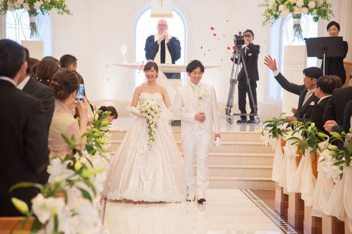 まずは、こちらの素敵なチャペル装花。すべて特注でカサブランカを用意されたそう!とても華やかですよね♡ブーケがバラだったので、違うお花を選ばれたそうですが、このブーケにもこだわりが…