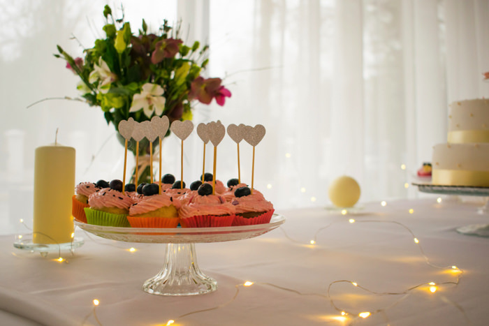 ナイトウェディングでなくても、あえてダウンライトにした会場にたくさんの間接照明を配置すればとっても大人めで落ち着く空間に。床置きサイズの照明でシックな大人めに、小さなLEDライトを使用するとちょっぴりキュートに。
