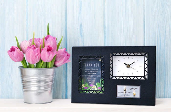 icon-check-square-o お気に入りの一枚を自分で選んで入れられる花時計フォトフレーム付き贈呈品はこちら