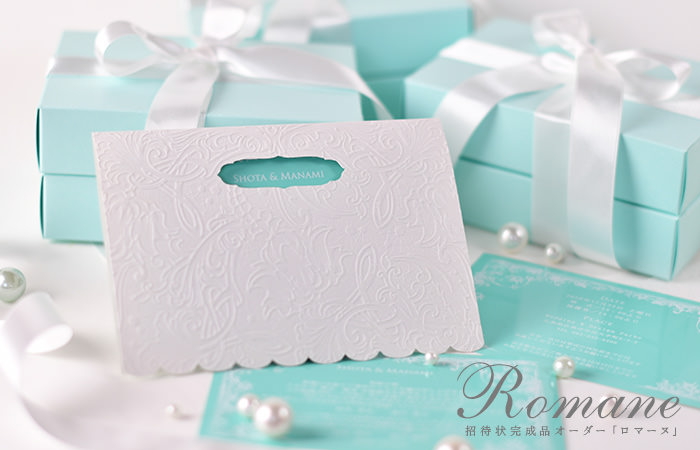 アンティークな型抜きとディテールにこだわったエンボスが映える招待状「ロマーヌ」はこちら
