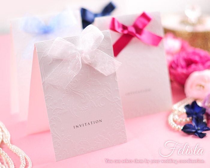 サテンとオーガンジーから選べるリボンの招待状「フェリスタ」はこちら