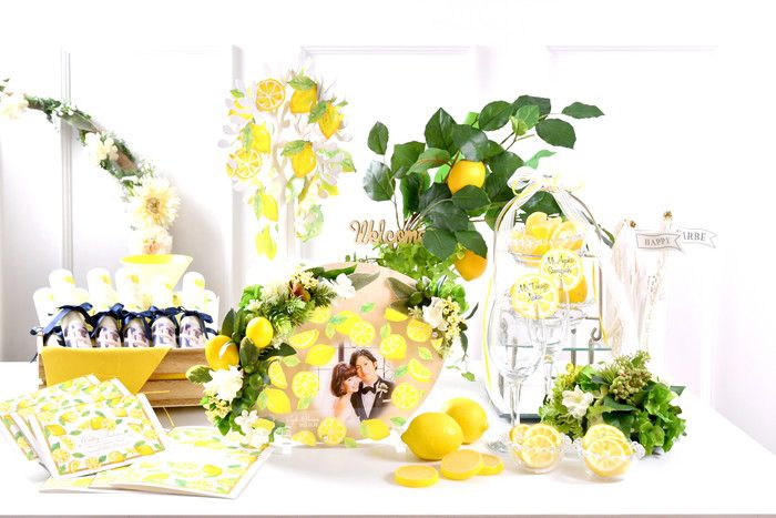 レモンチーフのコンセプトウェディングなら、テーブルアイテムはもちろん贈呈品でも爽やかに演出したいですね。