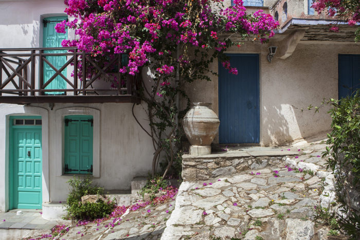 映画「マンマ・ミーア!」の舞台になったエーゲ海に浮かぶ島。実際に海外挙式も可能です。街に花が溢れる様子はゆったりとしたリゾート風ガーデンウェディングのコンセプトにぴったり。