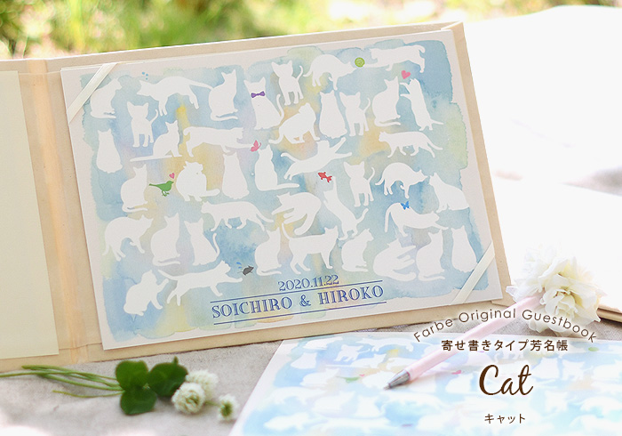 ネコ好きに優しい淡い色のゲストブック「キャット・ブルー」