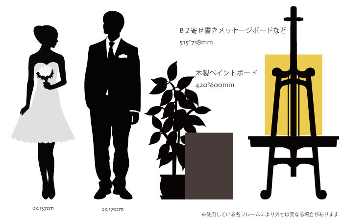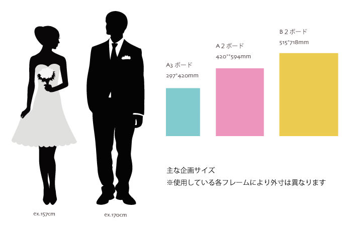 いかがでしょうか?お二人がイメージするウェルカムスペースと新居の飾る場所に合わせて、ピッタリなサイズを見つけてくださいね。※フレームのデザインや有無によってサイズが変わる場合がございます。ご注文の際は念のためご確認ください。