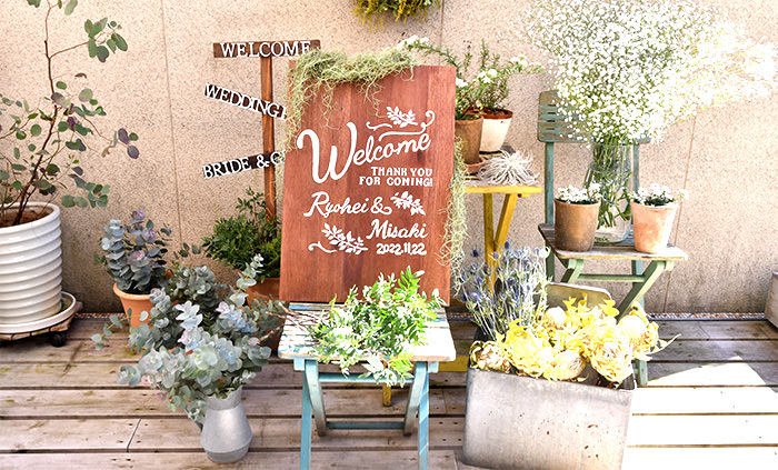 ウェルカムボード「木製ペイントボード手描き」