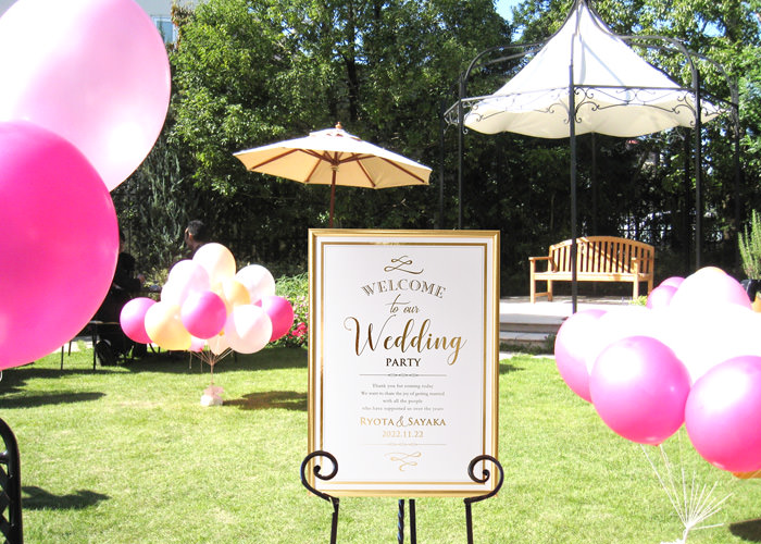 ウェルカムボードは当日に受付や披露宴までの待ち時間に見ていただくものなので、あまり小さいと見つけてもらえないかもしれません。決まりはありませんがゲストの人数やスペースの広さ、デザインに合わせてサイズを決めていきましょう。
