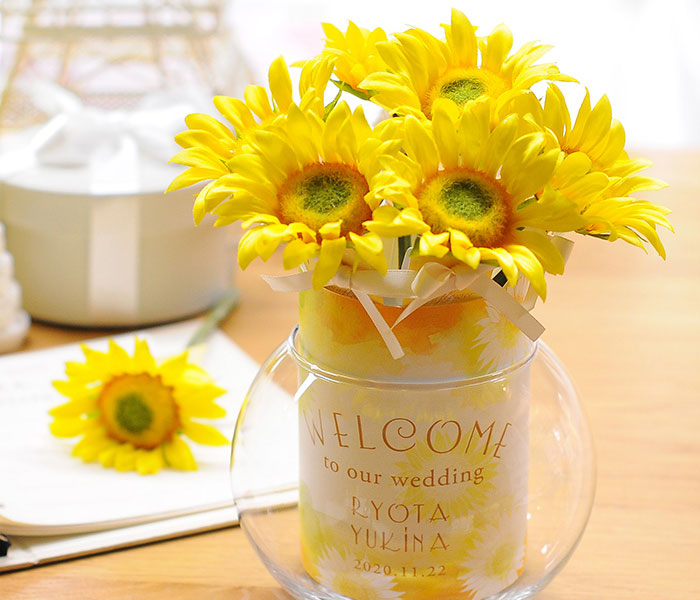元気いっぱい、ハッピーオーラ全開のひまわりで結婚式の入口となる受付スペースを飾りませんか?