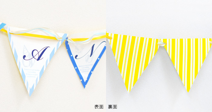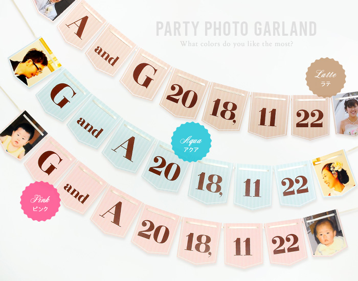 壁に飾ったり、受付テーブルの前面に飾ったり、テーブルの上に流れるように置いたりと、いろんな飾り方が出来て便利なのがガーランド。