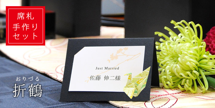 席札などの当日アイテムにちょこっと張り付いた小さなアイコン。ゲスト一人一人の色が違っても面白いですよね。最近ではミニブーケや貝殻、和装には折り鶴や水引が人気です。