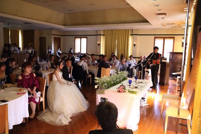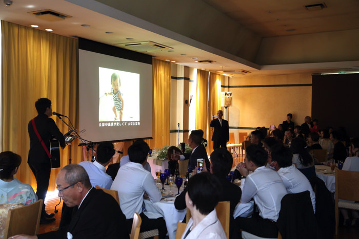 歌詞を載せた映像とともにアコースティックギターと生演奏。新婦の月ちゃんへの感謝の気持ちと、この日を迎えられた奇跡がメロディーと言葉によってさらに心に深く染み入り、会場は涙と感動に包まれました。