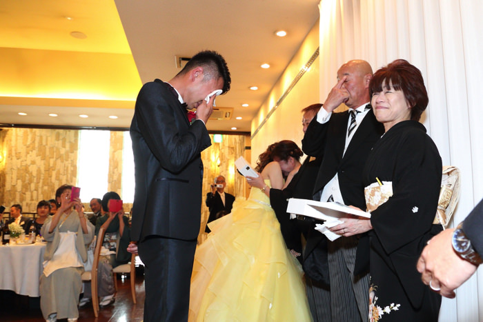ラストは、新婦さんからの手紙だけではなく、新郎さんからの手紙の演出も取り入れられました。今まで伝えられなかった感謝を言葉にして、想いが溢れ涙が止まらず読めれなくなるという感動のシーンだったそうです。