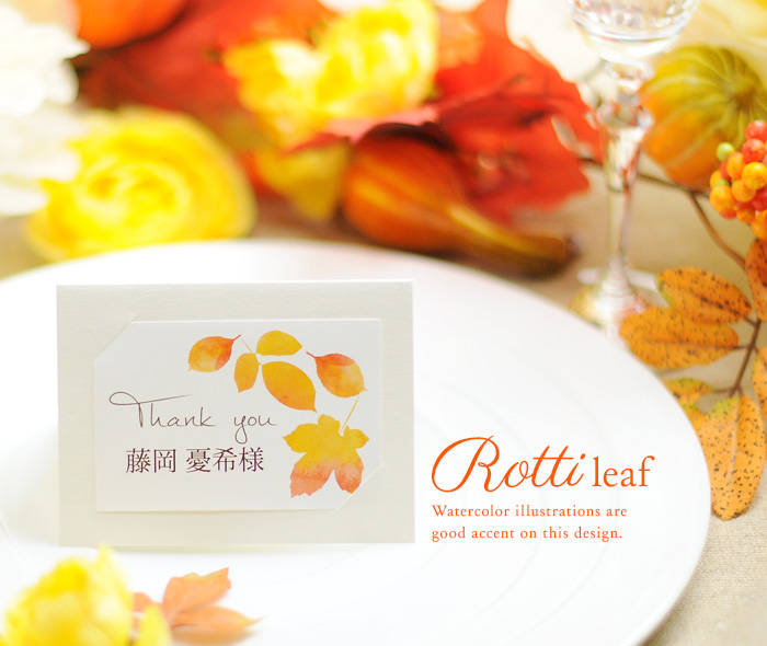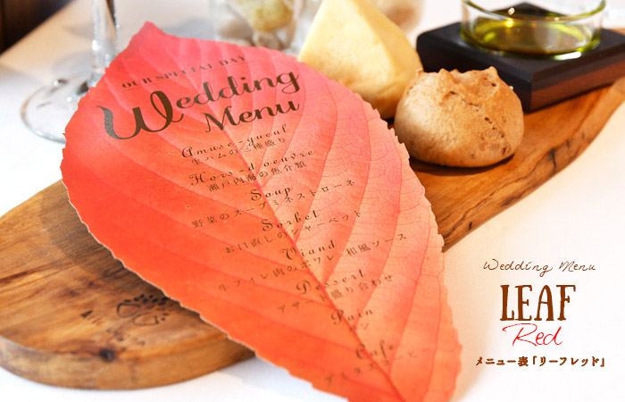 こちらは、まさに色づいた葉っぱ…ではなくメニュー表なんです。形といい色合いといいまるで本物みたいな美しさ。これがあるだけでゲストテーブルがいっきに華やかになりそう。