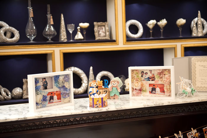 披露宴でのラストで贈呈された後、お見送りのシーンで受付スペースに飾られました。