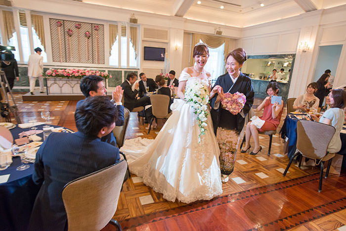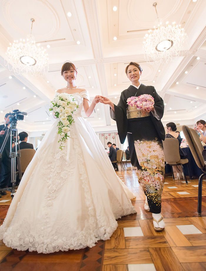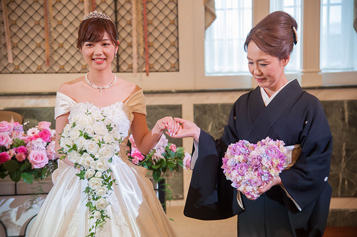お手紙を手渡したあと、退場の際にエスコートしていただくお母さまの手元に、まるでブーケのように携えられました。お手紙として感謝の気持ちを伝えるだけではなく、お母さまにもより美しくスポットライトを浴びてもらえるようにという素敵なアイデアです♡