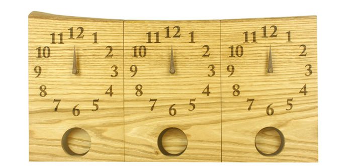 彼が結婚式贈呈品にいいなと思ったのは三連の時計。それぞれの家族と新しい家族が繋がる喜びを、一枚の板から切り出した木目の繋がりで表せる贈り物で表現したかったそうです。