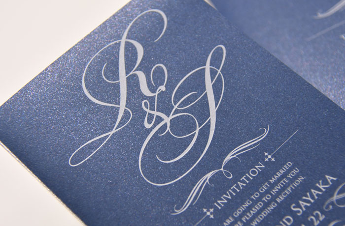 何通りもあるイニシャルの封緘シールを探さなくても、ペーパーアイテムそのものがイニシャルモチーフのデザインなら、お二人だけのオリジナリティたっぷりなペーパーアイテムに!キラキラした台紙に大きく配置されたイニシャル。アルファベット2つでこの存在感、マネしたくなるアイテムですよね。