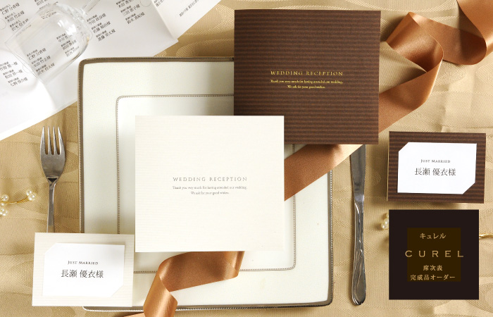 たためるタイプの席次表なら、ゲストのお名前をたっぷり載せてもコンパクト!小さくても台紙や髪質にこだわった、ラグジュアリーなペーパーアイテムです。大きい席次表はテーブルコーデに色を添えてくれるので悩むところですが。。そこは新郎さんとご相談を。