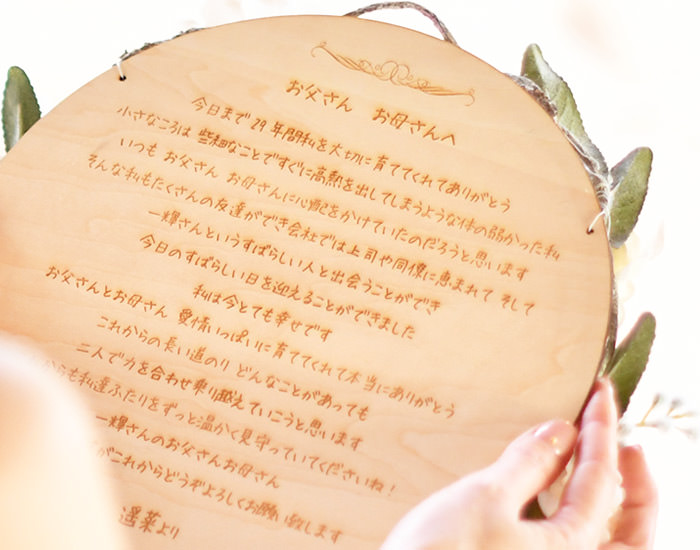 花嫁の手紙 木製レーザー刻印「リース」>>