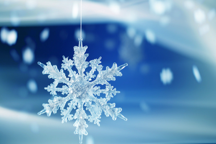 雪の結晶のオーナメントを飾ったり、ライスシャワーやフラワーシャワーの代わりにフェザーシャワー(真っ白な羽)や雪の結晶の形にパンチしたペーパーシャワーもおすすめ。