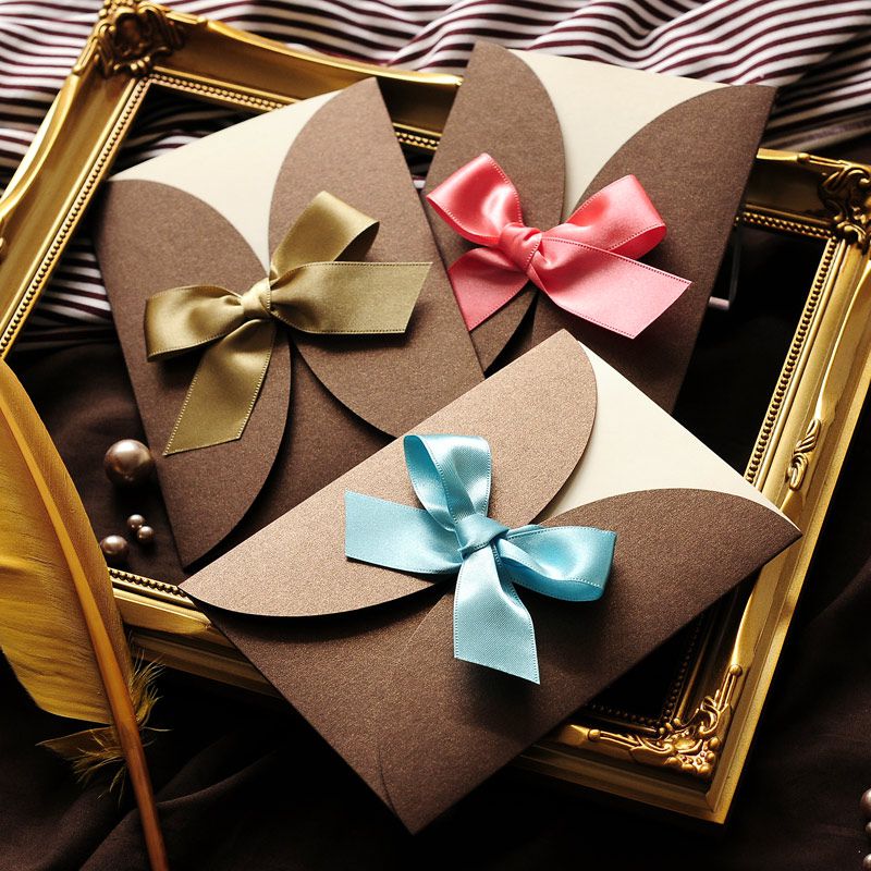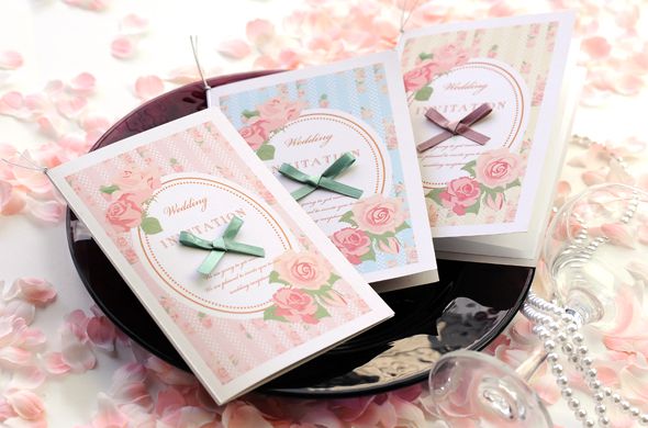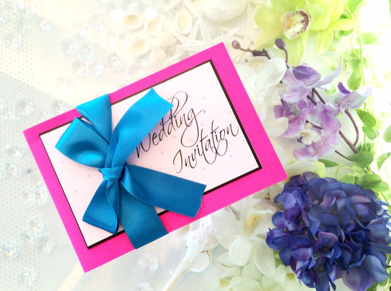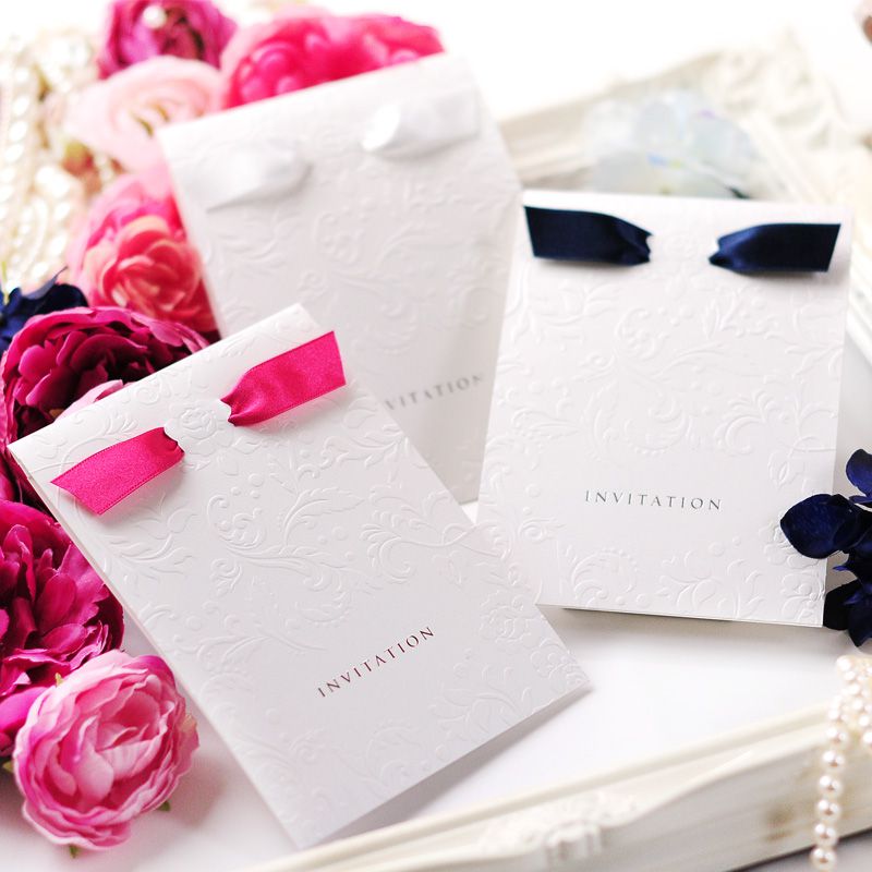リボンは色選びや結び方、ひだの作り方、長さなどによって、どんな雰囲気でも自由自在。リボン×ペーパーの相性は抜群です。既製品の招待状ではどうしても好きな色や生地がなかったら、オリジナルデザインをオーダーしたり、リボン部分はご自身でDIYしてみるのもいいかも。色の組合せを楽しみながら自分たちの挙式のテーマにあったデザインを選んでくださいね。