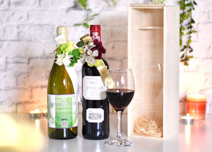 選べるメッセージでウェディング以外にも!感謝ワインギフト≪レーザー彫刻メッセージ入り木箱付≫