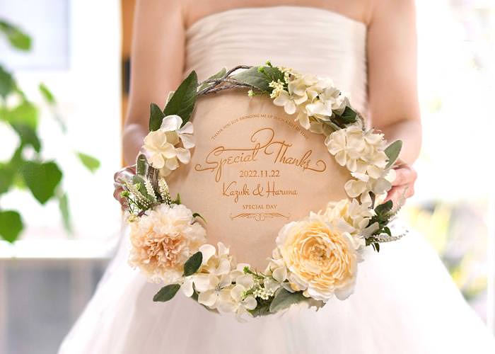 デザインアレンジ8種類!花嫁の手紙 木製レーザー刻印「リース」>>