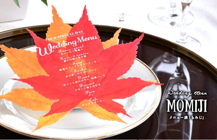 お名前がプリントされた台紙に、紅葉や鹿のシルエットが優しく落ちるちょっぴり大人な席札。心に残る演出になること間違いなし♪春挙式の方やお好きなモチーフがあるという方には、桜のモチーフなどオーダーメイドするという上級者テクも。