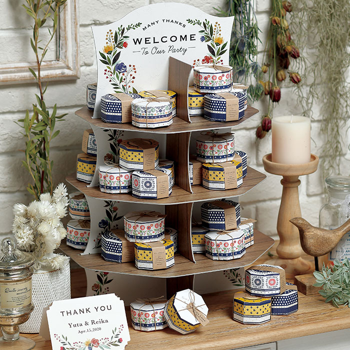 ウェルカムサインを兼ねられるこんなプチギフトなら、オーダーした後ウェルカムスペース全体のイメージがさらに膨らませられるかも。お二人のお名前と挙式日が入ります♡