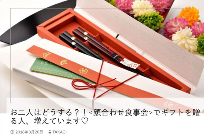 この記事を再確認:お二人はどうする?!<顔合わせ食事会>でギフトを贈る人、増えています♡
