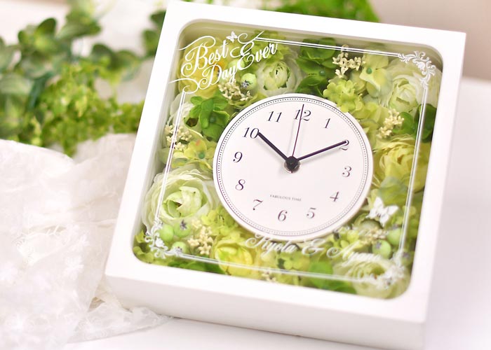こちらのギフトは大きすぎず小さすぎず、当日そのままお持ち帰りいただくのにも負担になりすぎないサイズ感。名前が入れられる特別仕様なので、結婚のお祝いにぴったり。日付を入れられるので、入籍日や初顔合わせ日、挙式日など一番思い入れのある日付を選んでプレゼントを。