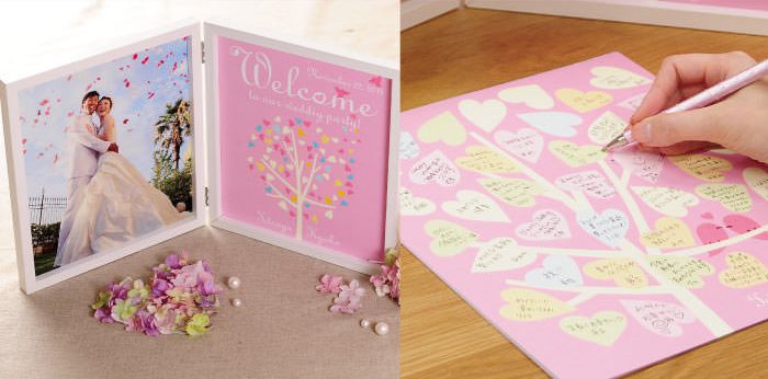 寄書きウェルカムボードWフレーム「ハートツリー(40名様用・追加可能)>>