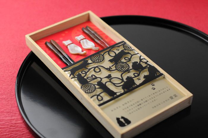 こちらのお箸セットは猫の形の箸置き付き。猫を飼っているご両親なら、「ウチの子のシルエットみたい!」とさらに喜んでくれるかも。娘、息子が巣立ってちょっぴり寂しい思いをしているご両親にも、あたたかな気持ちで食卓を囲んでもらえそうです。