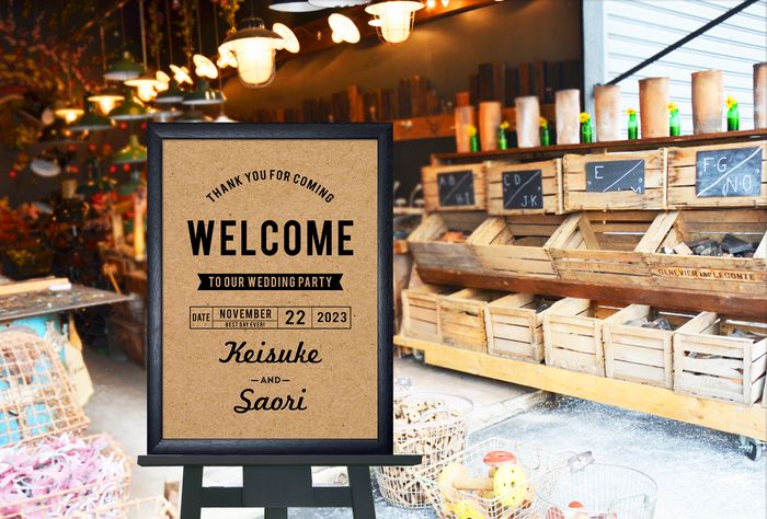 甘すぎるのは苦手というプレ花嫁さんやこだわり派の新郎さんにおススメなデザイン。WELCOMEの文字がはっきりしていて本来のウェルカムボードの役目をしっかりPR!
