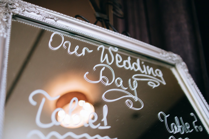 1つのフロアに複数披露宴会場がある場合、あまり受付スペースに大きなものやたくさんのアイテムを並べるのは難しかったりしますよね。一番大事なのは「私たちの結婚式会場はここだよ!」とゲストさんに知らせるアイテムが最重要。