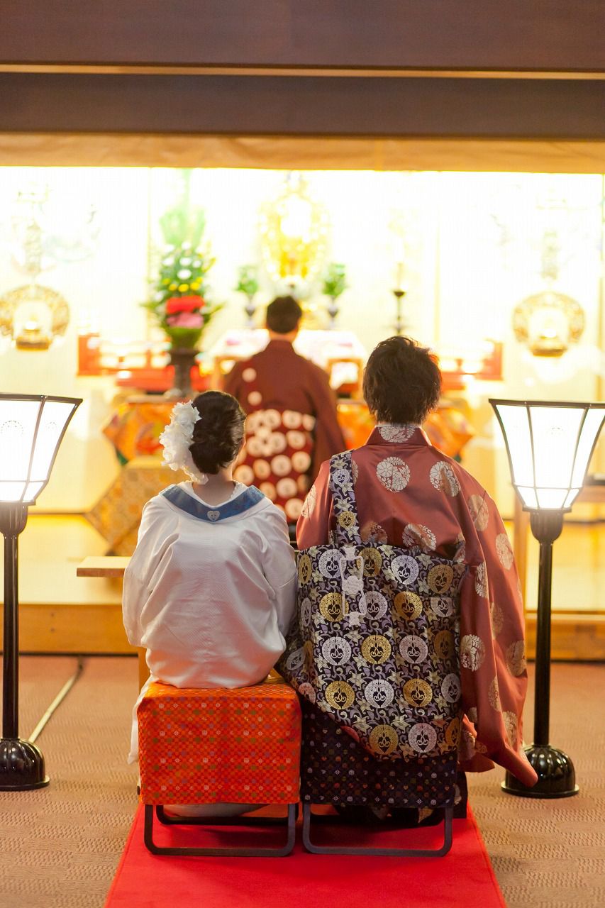 結婚式は一般的に思い浮かぶのが、「教会式」「人前式」と「神前式」の3タイプではないでしょうか。実は、上記他、お寺で仏様に向けて行う仏前式」もあること、ご存知でしょうか?まだまだ一般的ではないため、現実では僧侶関係者の方々が行なっている挙式スタイルとなりますが芸能人のかたも仏前式で結婚されたりして、和婚ブームの中、じわじわ人気も・・・・。実際に仏式で結婚式をされた花嫁さんの声を通して、仏前式について説明していきます。