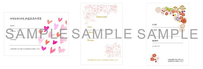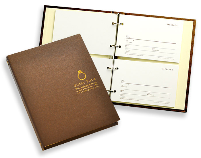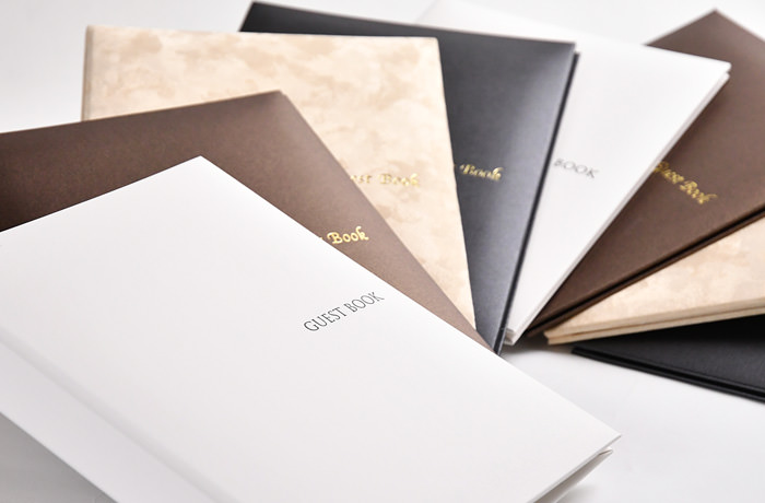 なんとなく「1冊買う」というイメージのゲストブックですが、その実はシートと表紙が分けられるものが多数。そしてゲストさんに記帳いただくシートにも、記入内容に合わせてフォーマットやデザインがたくさん用意されています。