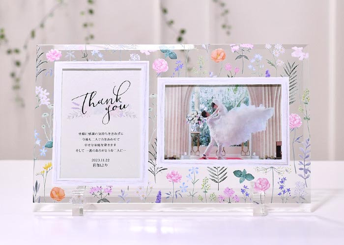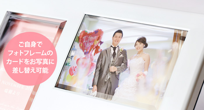さらに式後や前撮り撮影後にお写真が差し替えられるフォトフレームなら、幸せな瞬間を更新できる楽しみが。顔合わせ会・結納から式後まで、なが〜く使える記念品にできるんです♡