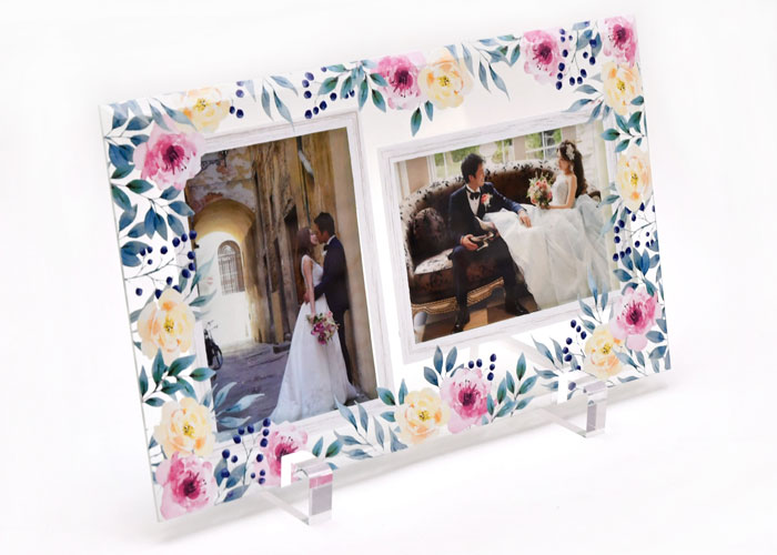 贈り物としてフォトフレームやアルバムを用意するなら、選ぶのは飾りたくなるような華やかなアレンジ。枚数は、新郎新婦さんそれぞれの小さい頃の写真が飾れるような、2枚のお写真をセットできるタイプがおすすめです。