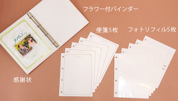 こちらのブライズセットは、文字数たっぷりの便箋はもちろん、アルバムと感謝状とお手紙の三位一体な花嫁さんの嬉しいバリューアイテム。これまでの思い出や感謝の気持ちをたっぷり書きたい方におすすめ。エピソードがいっぱいあるご家族や、宛てたい方が複数名いるようなステップファミリーの方におすすめです。