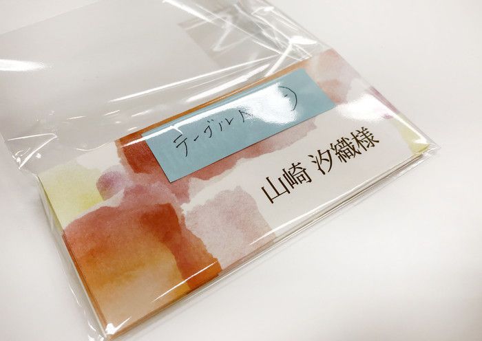 クリスタルパックなどに入れておけば、ばらけることもなく安心。席名を知らせるために付箋つける場合はクリスタルパックの中にいれるほうがポロっと落ちることないのでおススメです。