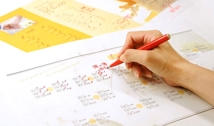 名前や肩書に修正シールを貼ったりするのは失礼にあたるため、極力避けたいもの。中紙部分(席次部分)を作り直して印刷し直すのが一番です。席次表は、直前までゲストの顔ぶれが決まらない可能性もあり、修正が入りやすいアイテム。それを見越してスケジュールを立てましょう。