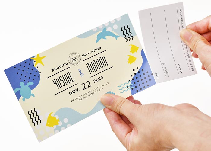 こちら水族館への入場券風招待状。半券付チケットは個性派デザインが多いよう。