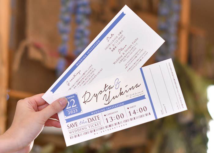 映画館やコンサート、劇場やスポーツ競技会場などでよく見かける入場券風のもの。入場券って入り口でスタッフの人に渡し、半券部分をカットされますよね。まさにあのスタイルが結婚式でも取り入れられているんです。
