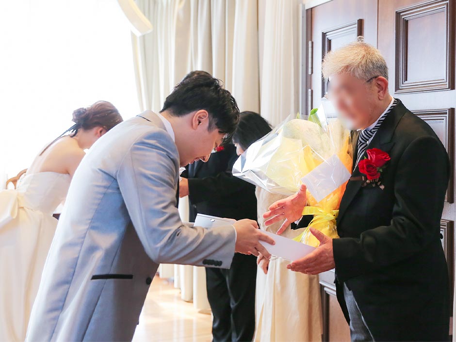両親への感謝の気持ちを伝えます。新婦の両親への一言や、ゲストへの謝辞もおすすめです。