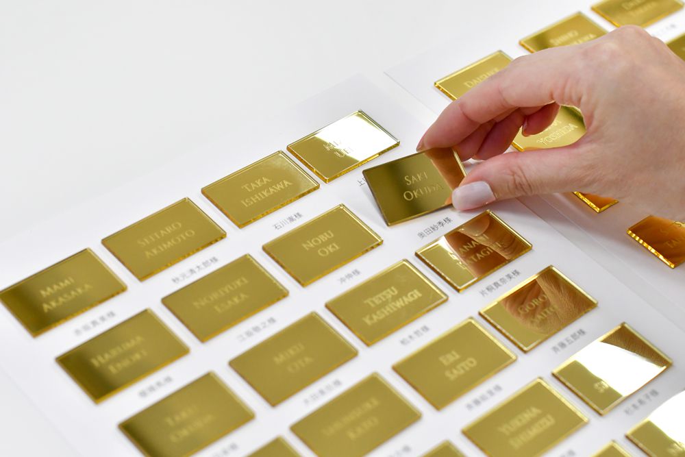 ゴールドのプレート1つ1つにゲストのお名前がレーザー彫刻されています。